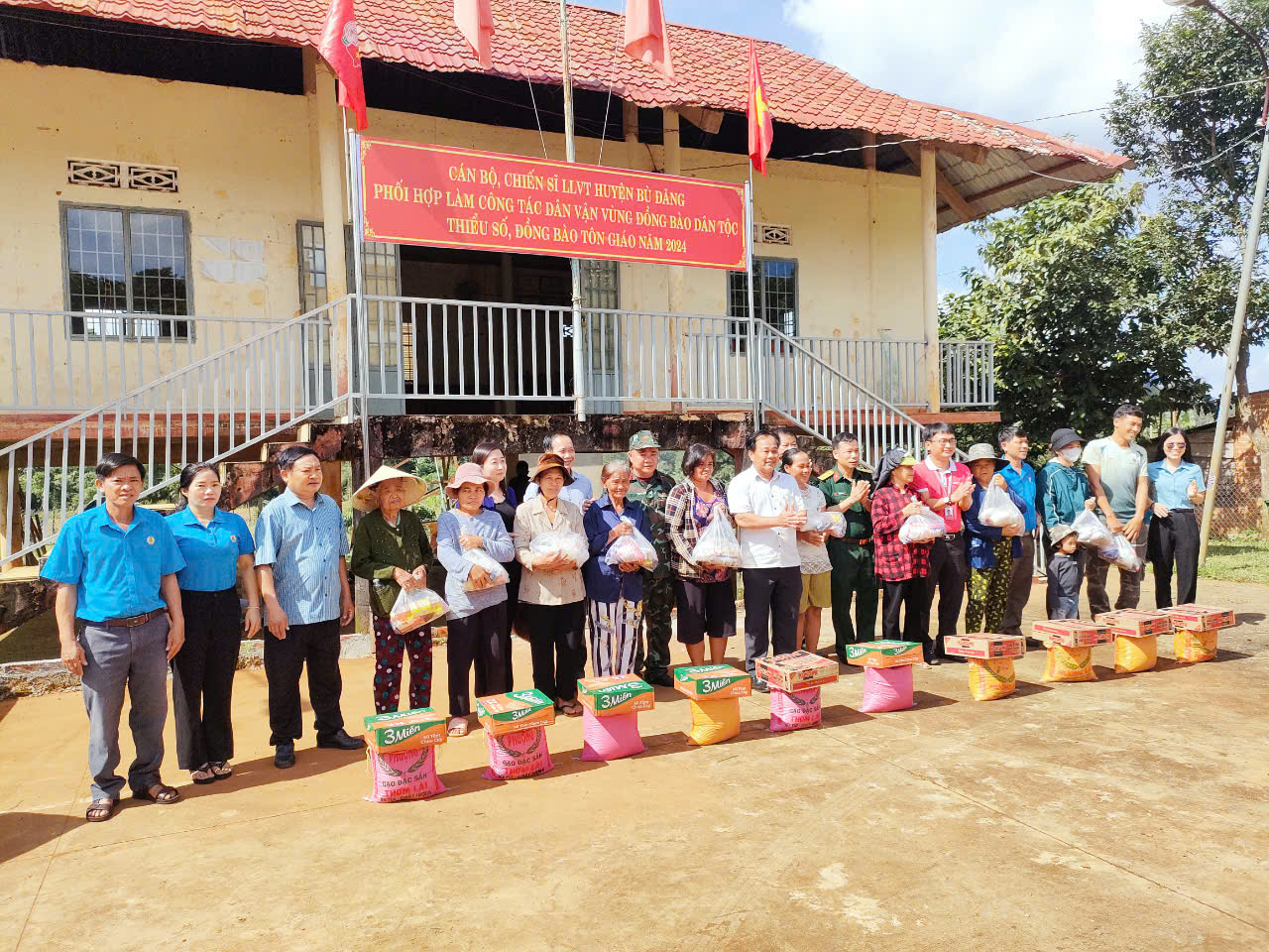 Dịp này Ban chỉ đạo quần chúng Liên ngành huyện Bù Đăng cũng đã tổ chức các hoạt động Dân vận, phát quang, khơi thông cống rãnh, làm vệ sinh, khuôn viên các điểm trường, khu vui chơi Văn hóa thiếu nhi, giúp đỡ các gia đình vừa được tặng nhà san lấp mặt bằng, nền nhà hỗ trợ thi công và phối hợp với chi nhánh Viettel huyện Bù Đăng, Đảng ủy – UBND xã Phú Sơn tặng 10 phần quà cho các gia đình đặc biệt khó khăn trên địa bàn xã, mỗi phần trị giá 500 ngàn đồng.