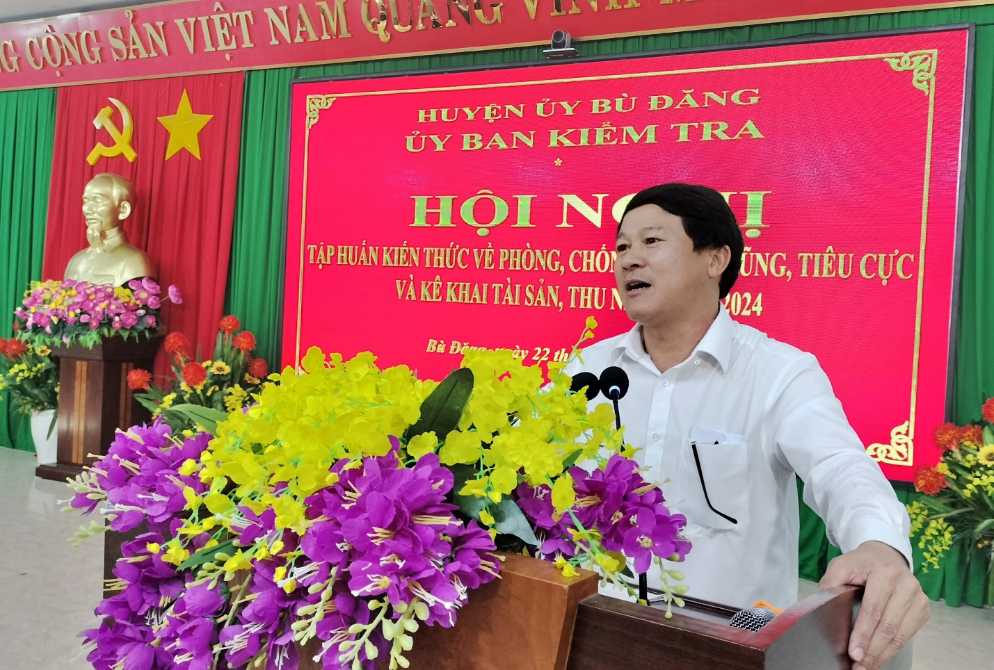 Thời gian qua, Uỷ ban kiểm tra Huyện uỷ Bù Đăng đã nghiêm túc nghiên cứu, tích cực triển khai, tuyên truyền và hướng dẫn công tác kê khai tài sản, thu nhập bằng nhiều thức đến các cơ quan, đơn vị trên địa bàn huyện. Qua đó tạo sự chuyển biến về nhận thức, ý nghĩa của việc minh bạch tài sản, thu nhập. Những hạn chế, lúng túng trong thực hiện kê khai tài sản, thu nhập bước đầu đã được khắc phục.