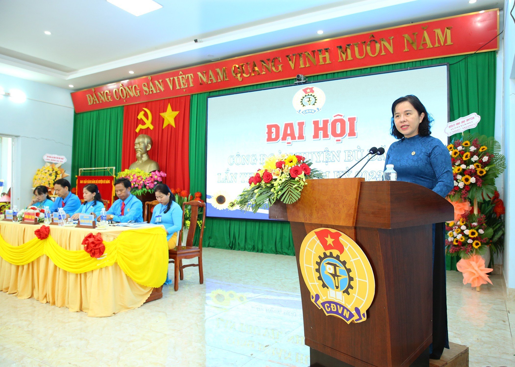 Nhiệm kỳ 2016-2023, các cấp công đoàn huyện đã hỗ trợ xây mới, sửa chữa 16 căn “Mái ấm công đoàn”; hỗ trợ kịp thời cho Đoàn viên và Người lao động gặp khó khăn hoạn nạn, bệnh hiểm nghèo với tổng kinh phí 502 triệu đồng. Hỗ trợ 1.000 lượt công nhân và công đoàn viên khó khăn nhân các dịp lễ, tết, với số tiền hơn 2 tỷ đồng. Chương trình “Sóng và máy tính cho em” đã được Đoàn viên, CNVC lao động đồng lòng ủng hộ với số tiền vận động được hơn 652 triệu đồng. Phong trào ủng hộ Quỹ Vì người nghèo đã vận động được số tiền hơn 1 tỷ đồng. Chương trình “01 triệu sáng kiến – nỗ lực vượt khó, sáng tạo, quyết tâm chiến thắng đại dịch covid-19” do Tổng Liên đoàn Lao động Việt Nam phát động, qua 02 đợt đã có 283 sáng kiến của ĐV, CNVCLĐ được công nhận. Hàng năm có trên 90% CĐCS đạt vững mạnh. Trong nhiệm kỳ đã thành lập được 27 CĐCS, kết nạp trên 300 ĐVCĐ, nâng tổng số CĐCS trong các doanh nghiệp khu vực ngoài Nhà nước lên 27 tổ chức với trên 500 ĐVCĐ. Với tinh thần “Đổi mới - Dân chủ - Đoàn kết - Phát triển” Đại hội đã bầu Ban Chấp hành khóa mới gồm 15 người; đồng chí Lương Thị Mỹ Duyên tái cử chức danh Chủ tịch LĐLĐ huyện khóa VII, nhiệm kỳ 2023 - 2028; bầu đoàn đại biểu dự Đại hội đại biểu Công đoàn tỉnh Bình Phước khóa XI, nhiệm kỳ 2023 - 2028 gồm 10 đại biểu chính thức và 2 đại biểu dự khuyết. Phát biểu tại đại hội, Phó Bí thư huyện ủy Bù Đăng Nguyễn Tấn Hồng ghi nhận và biểu dương những kết quả đạt được của các tổ chức Công đoàn trong nhiệm kỳ qua đồng thời đề nghị, Ban Chấp hành LĐLĐ huyện khóa VII, nhiệm kỳ 2023 - 2028 cần triển khai đa dạng, linh hoạt các hình thức tuyên truyền; tiếp tục đổi mới và triển khai tốt các phong trào thi đua, chú trọng phát hiện, xây dựng và nêu gương điển hình tiên tiến trong các tổ chức công đoàn và đoàn viên, CNVCLĐ; đẩy mạnh công tác giám sát, phản biện xã hội nhằm bảo đảm quyền và lợi ích hợp phát của đoàn viên, người lao động… cần thiết thực quan tâm, chăm lo lợi ích chính đáng của đoàn viên, CNVCLĐ. Đặc biệt, không ngừng đổi mới về nội dung, phương thức hoạt động, chú trọng việc thực hiện chuyển đổi số trong thời đại công nghệ số… Dịp này, 6 tập thể 14 cá nhân có thành tích tiêu biểu trong phong trào thi đua lao động và hoạt động công đoàn huyện Bù Đăng, nhiệm kỳ 2016 – 2023 được UBND và Liên đoàn lao động huyện tặng Giấy khen./.