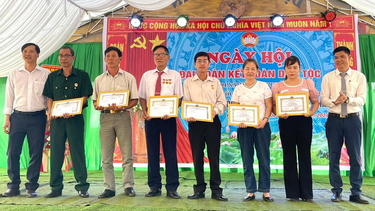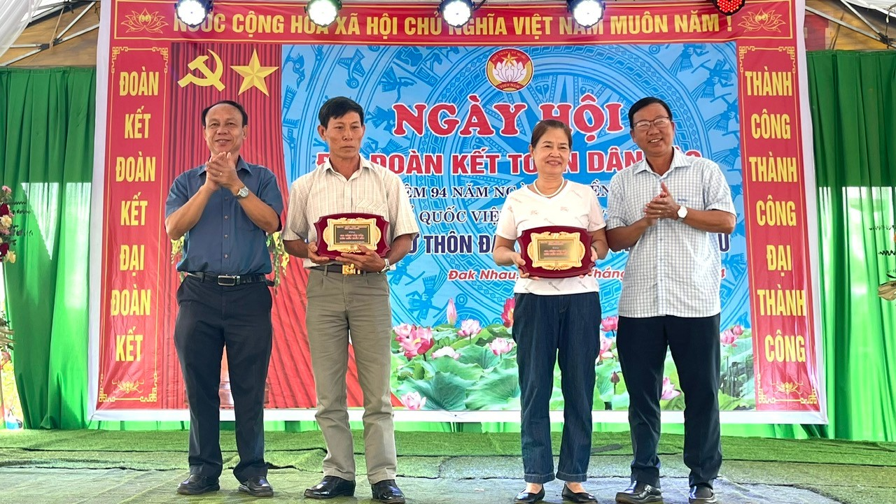 Lãnh đạo Đảng uỷ, UBND xã Đak Nhau tặng khen thưởng cho tập thể và cá nhân có những đóng góp tiêu biểu trong phong trào toàn dân đoàn kết xây dựng đời sống văn hoá ở khu dân cư.