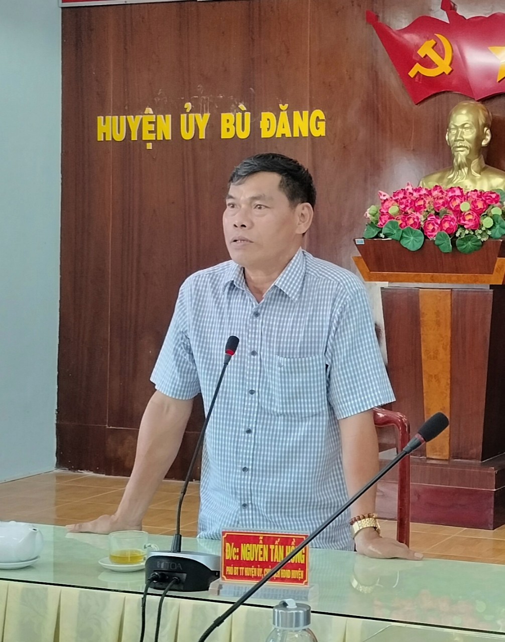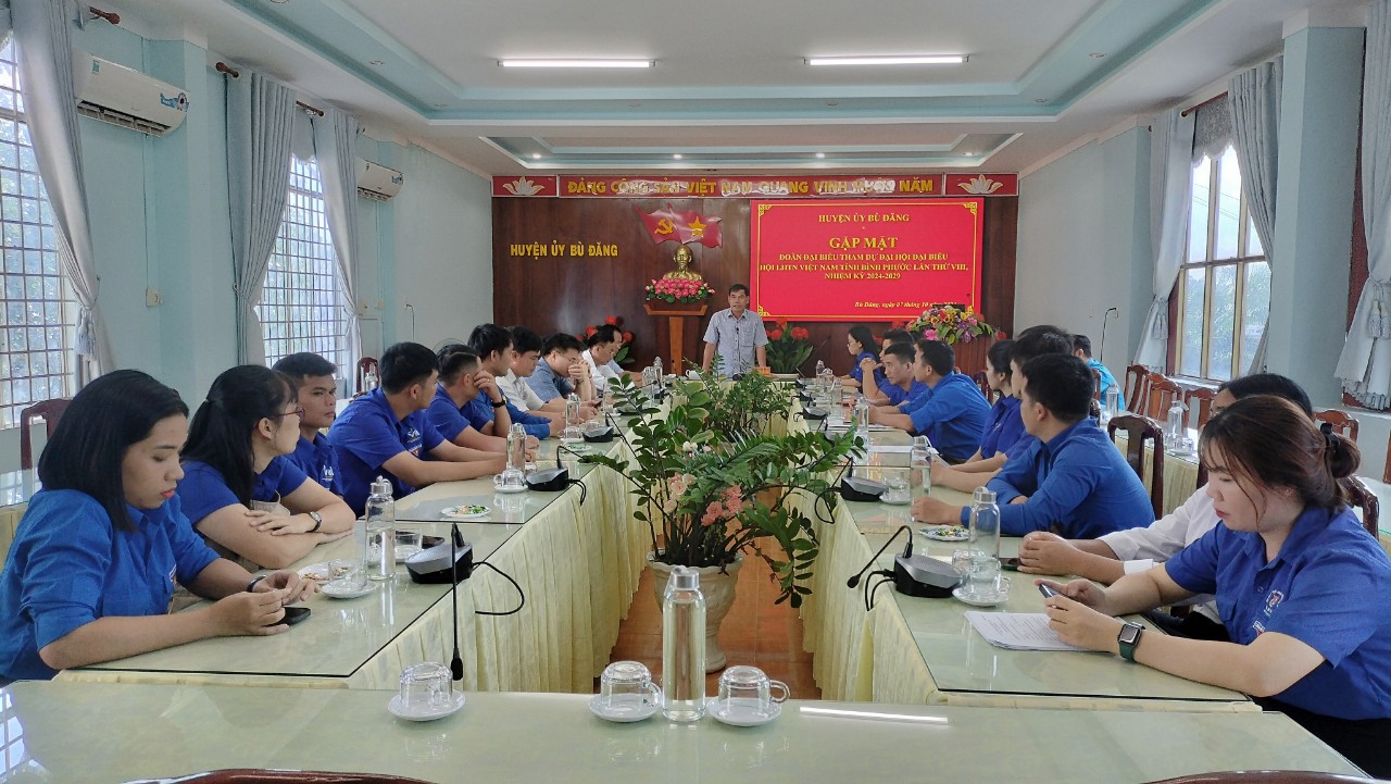 Chiều 7-10, đồng chí Nguyễn Tấn Hồng, Phó Bí thư Thường trực Huyện ủy, Chủ tịch HĐND huyện Bù Đăng đã có buổi gặp gỡ, trao đổi với Đoàn đại biểu Hội Liên hiệp Thanh niên Việt Nam huyện dự Đại hội đại biểu Hội LHTN Việt Nam tỉnh lần thứ VIII, nhiệm kỳ 2024 - 2029.