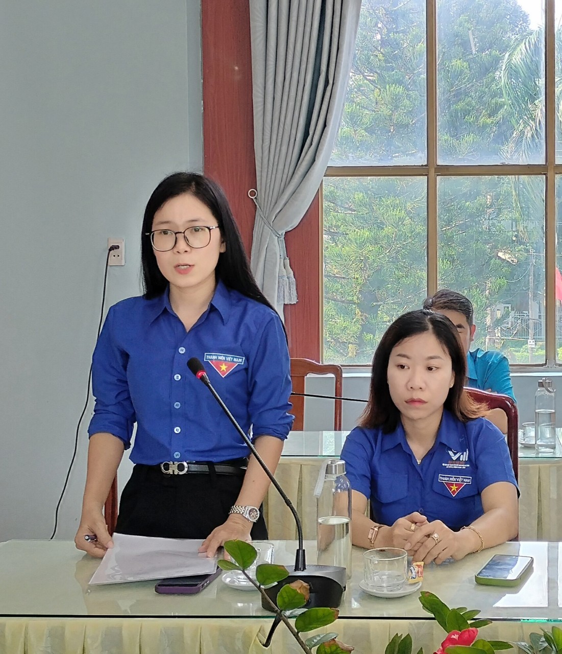 Đồng chí Trần Thị Hoài - Phó Bí thư huyện đoàn, Chủ tịch Hội LHTN Việt Nam huyện Bù Đăng báo cáo công tác chuẩn bị tham gia Đại hội Hội LHTN tỉnh Bỉnh Phước.