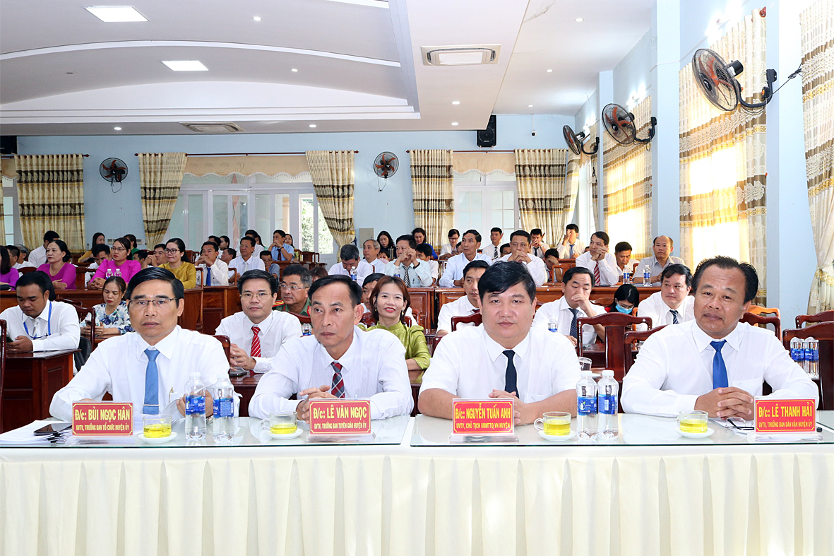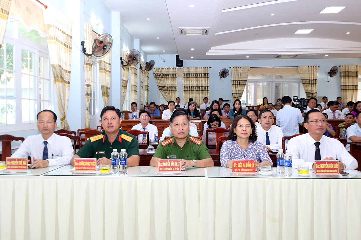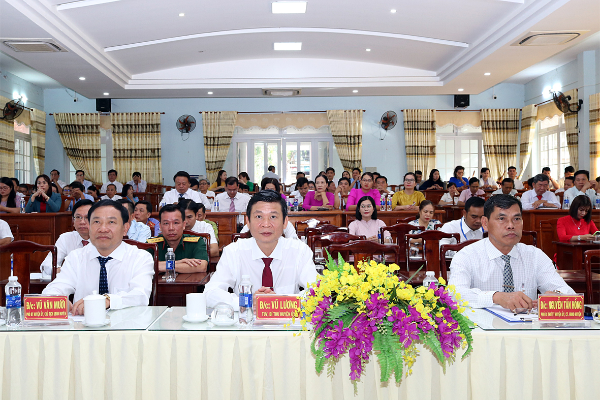 Theo đó, Hội nghị đã công bố Quyết định của Ban Tổ chức Tỉnh uỷ, của huyện uỷ; Nghị quyết của HĐND huyện về hợp nhất, thành lập các cơ quan; Quyết định của Ban Thường vụ Huyện ủy, Chủ tịch UBND huyện về nhân sự các cơ quan chuyên môn trực thuộc UBND huyện.
