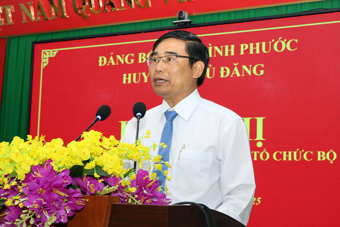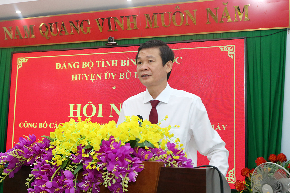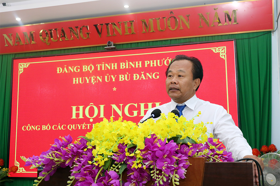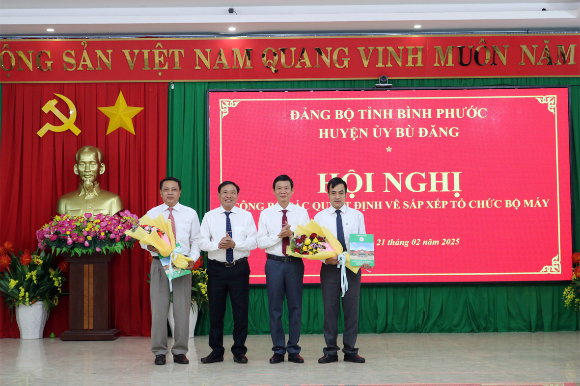 Sáng 21-2, Huyện ủy Bù Đăng tổ chức hội nghị công bố các quyết định sắp xếp tổ chức bộ máy và nhân sự sau khi hợp nhất, thành lập các cơ quan, đơn vị; tổ chức đảng theo Nghị quyết số 18 – NQ/TW. Thường trực Huyện ủy chủ trì hội nghị.