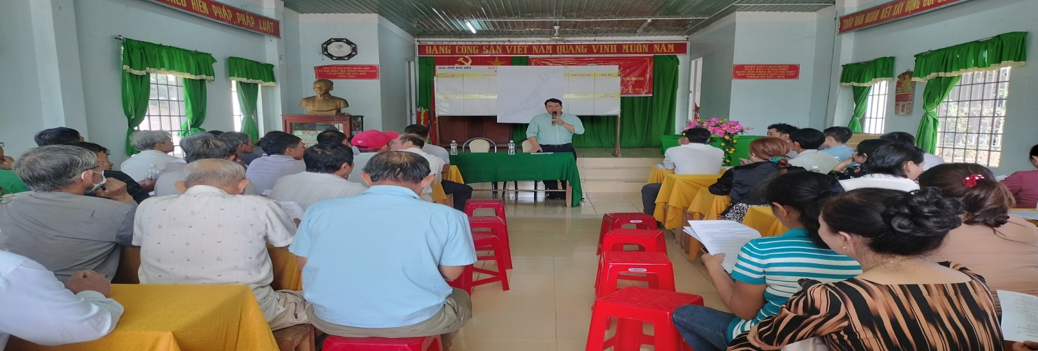 Đại diện Ban quản lý dự án đầu tư xây dựng tỉnh Bình Phước công bố chủ trương, mục đích đầu tư dự án đến các hộ dân.