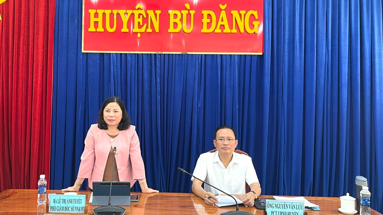 bà Lê Thị Ánh Tuyết – Phó giám đốc Sở Nông nghiệp và Môi trường tỉnh Bình Phước phát biểu gợi ý các vấn đề tại buổi làm việc.