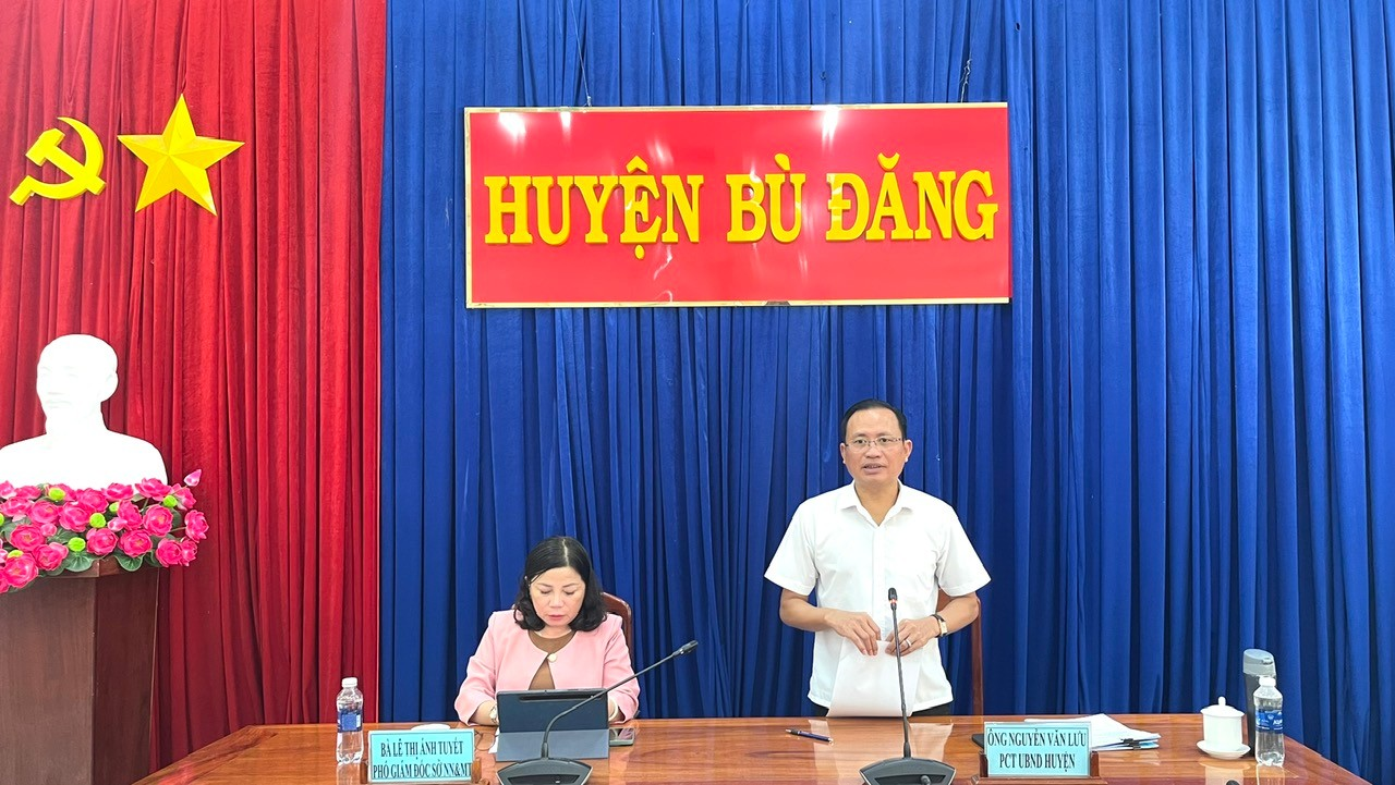 Sáng 14-3, bà Lê Thị Ánh Tuyết – Phó Giám đốc Sở Nông nghiệp và Môi trường tỉnh Bình Phước, làm trưởng đoàn công tác đã có buổi làm việc với Huyện Bù Đăng giải quyết những vướng mắc, khó khăn về đất đai của các hộ được hỗ trợ xây nhà trong Chương trình xoá nhà tạm, nhà dột nát trên địa bàn huyện. Tiếp và làm việc với đoàn công tác có ông Nguyễn Văn Lưu - PCT.UBND huyện, lãnh đạo các phòng chuyên môn huyện, lãnh đạo các xã, thị trấn.