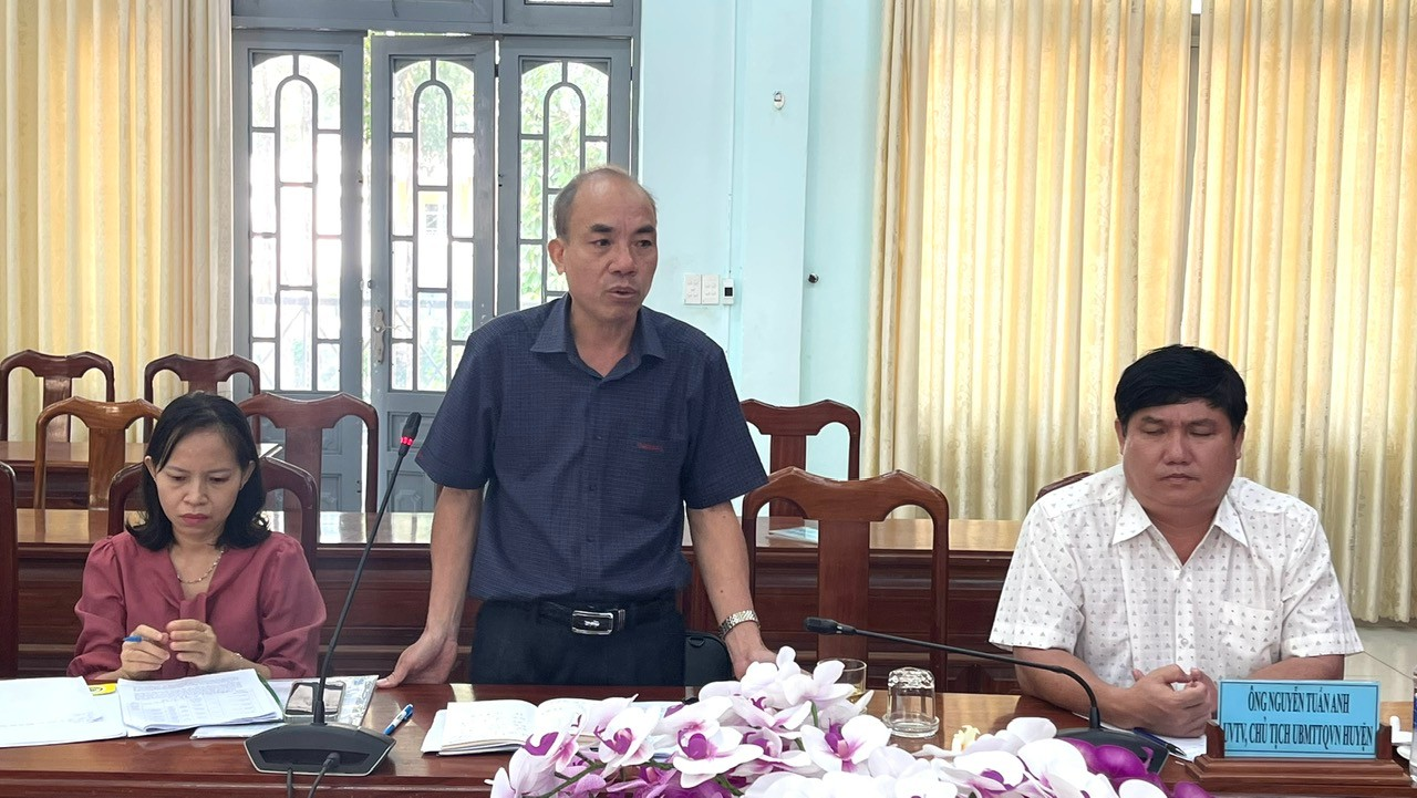 ông Nguyễn Văn Lưu - PCT.UBND huyện phát biểu làm rõ những vướng mắc, khó khăn về đất ở đối với các hộ nghèo, hộ cận nghèo.