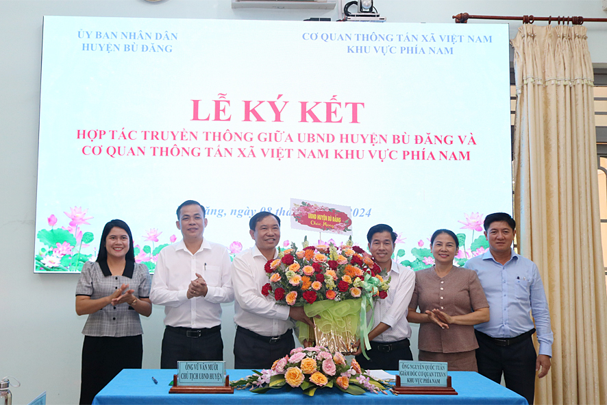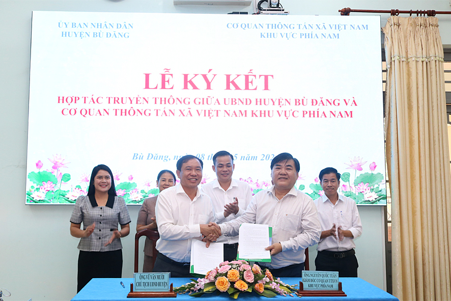 Tham dự lễ ký kết, về phía TTXVN Khu vực phía Nam có ông Nguyễn Quốc Tuấn, Bí thư Đảng ủy, Giám đốc Cơ quan TTXVN Khu vực phía Nam cùng lãnh đạo, phóng viên thường trú tại tỉnh Bình Phước; về phía UBND huyện Bù Đăng có ông Vũ Văn Mười, Phó Bí thư huyện ủy, Chủ tịch UBND huyện cùng lãnh đạo HĐND, UBMTTQ, các hội đoàn thể, phòng chuyên môn huyện.