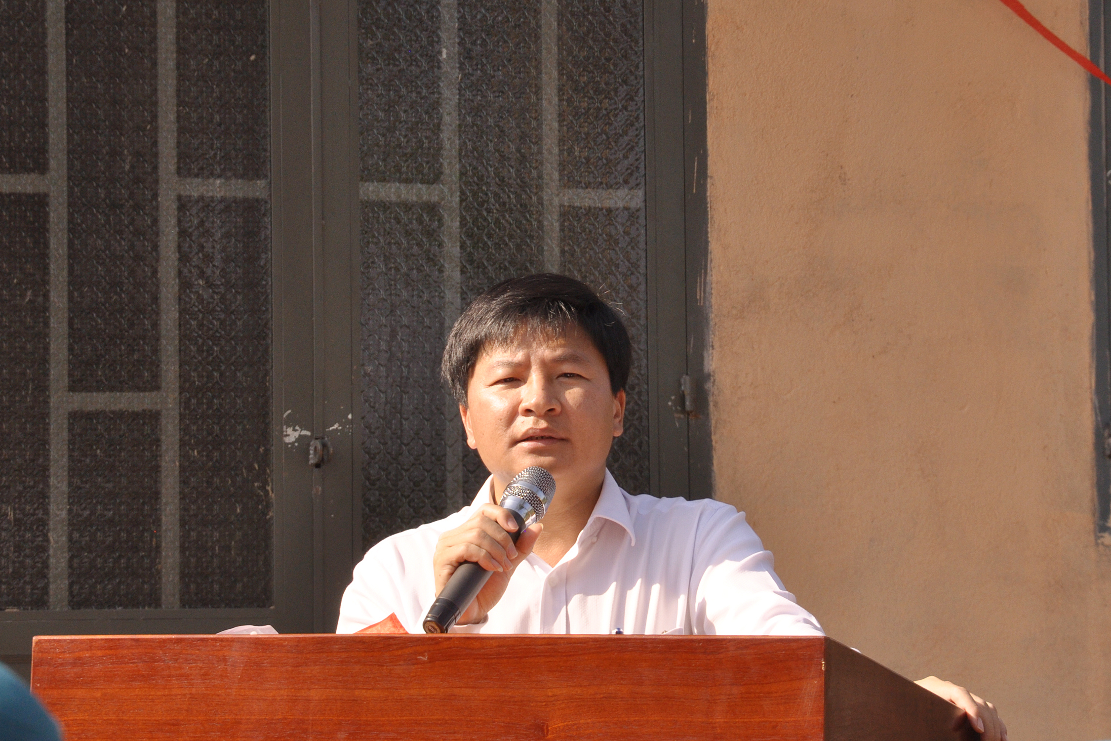 Đồng chí Nguyễn Thanh Tùng Phó bí thư huyện uỷ, chủ tịch UBND huyện phát biểu chúc mừng các hộ dân đồng thời mong muốn các hộ dân sớm ổn định cuộc sống, chăm chỉ làm ăn vươn lên thoát nghèo