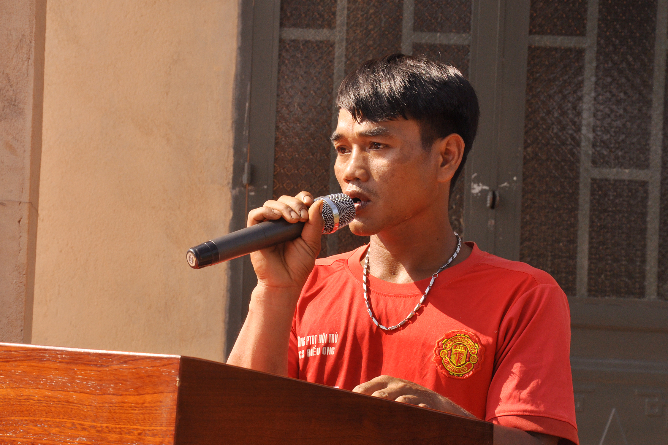 Ông Điểu Ké đại diện cho các hộ được bàn giao nhà phát biểu cảm ơn, hứa sẽ chăm lo phát triển kinh tế để sớm thoát nghèo