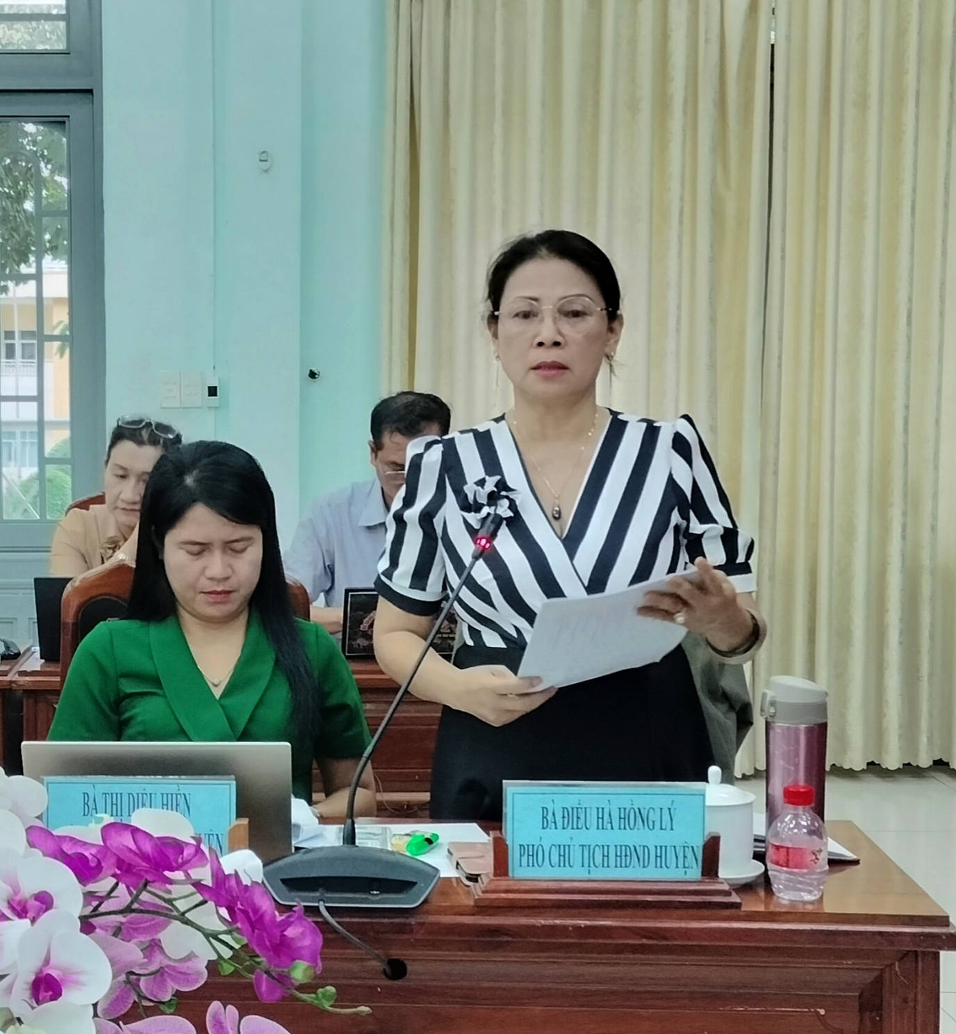 Phó Chủ tịch HĐND huyện Điểu Hà Hồng Lý phát biểu tại cuộc họp