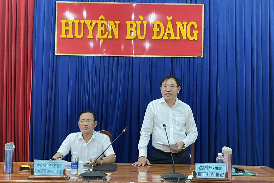 Chủ tịch UBND huyện Vũ Văn Mười và phó chủ tịch UBND huyện Nguyễn Văn Lưu đồng chủ trì hội nghị