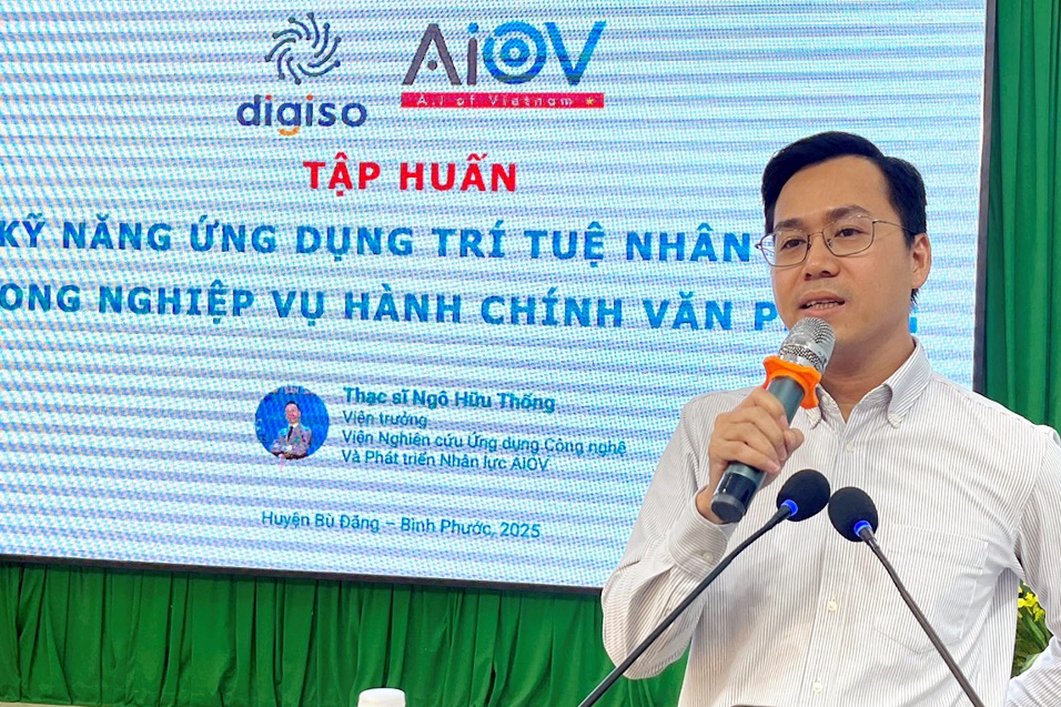 Thạc sĩ Ngô Hữu Thống – Viện trưởng Viện Nghiên cứu Ứng dụng công nghệ và Phát triển Nhân lực AIOV trình bày các kỹ năng ứng dụng trí tuệ nhân tạo AI trong nghiệp vụ hành chính văn phòng