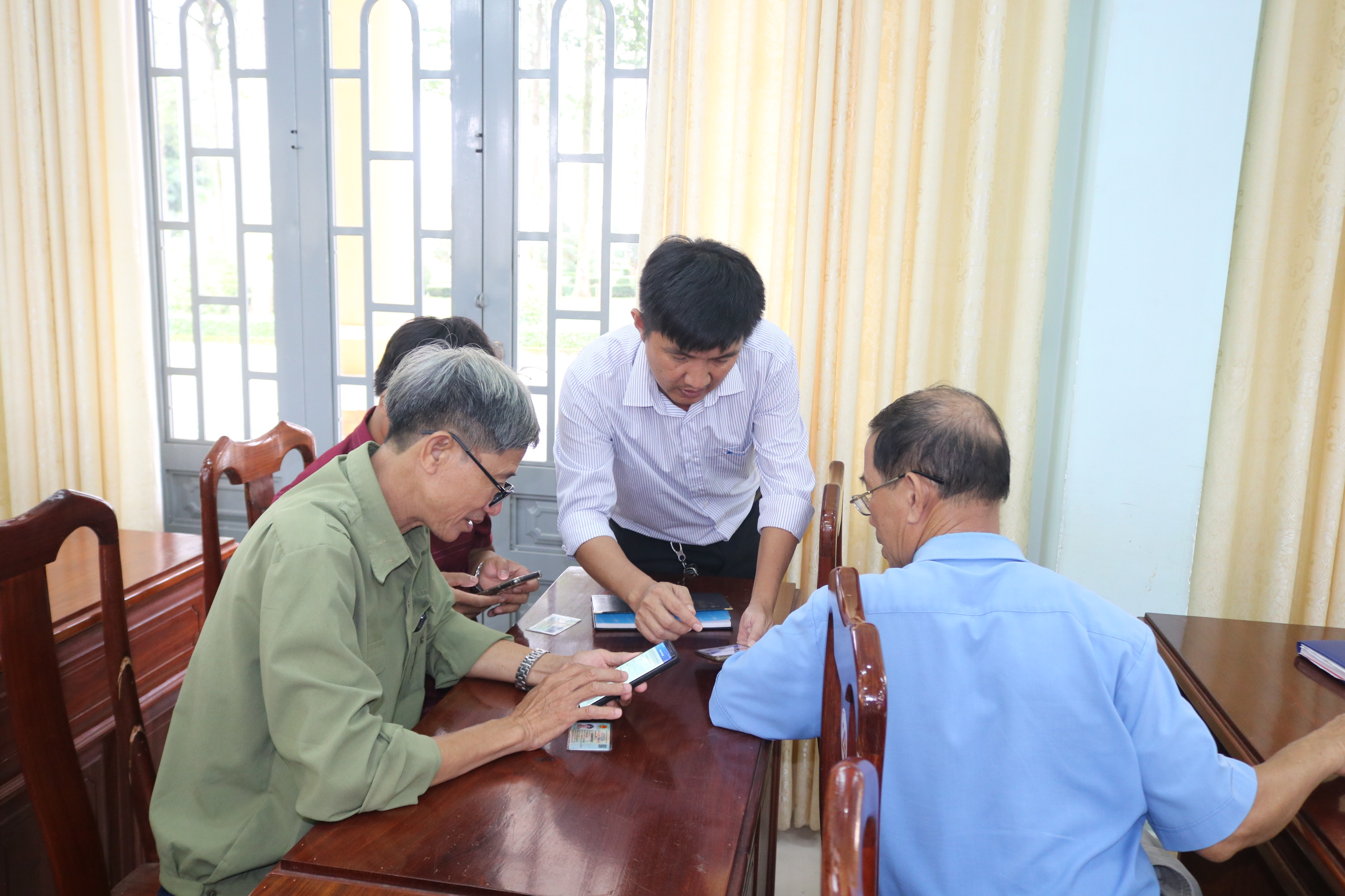 Ông Võ Đức Trung giám đốc VNPT chi nhánh Bù Đăng hướng dẫn đại biểu cài đặt ứng dụng SmartCa trên điện thoại thông minh