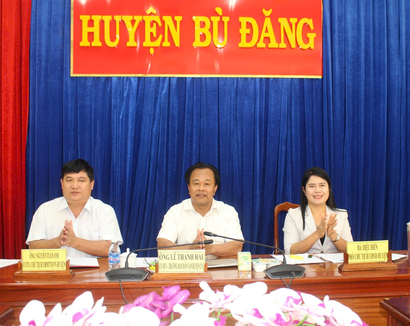 Ông Lê Thanh Hải, Uỷ viên Ban thường vụ, Trưởng ban Dân vận; Ông Nguyễn Tuấn Anh, Ủy viên ban thường vụ, Chủ tịch UBMTTQVN huyện, bà Thị Diệu Hiền, Phó Chủ tịch UBND huyện Bù Đăng tại buổi họp mặt.