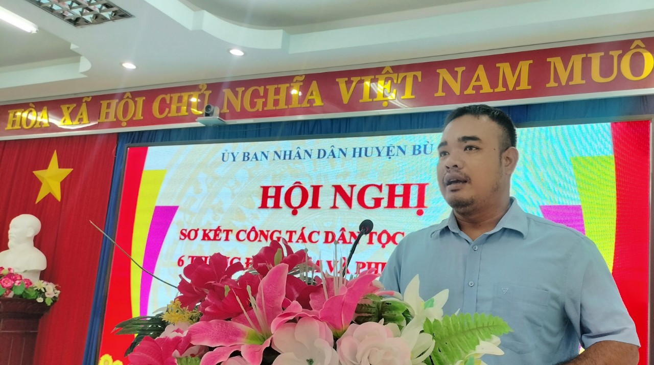 Sáng 12-7, UBND huyện Bù Đăng tổ chức sơ kết công tác dân tộc, tôn giáo 6 tháng đầu năm; triển khai nhiệm vụ trọng tâm 6 tháng cuối năm 2024. Dự Hội nghị có Phó Trưởng ban dân tộc tỉnh Nguyễn Lương Nhân, Phó chủ tịch UBND huyện Thị Diệu Hiền chủ trì Hội nghị.