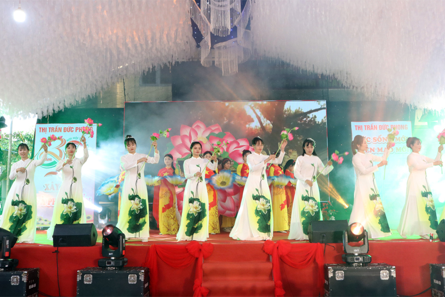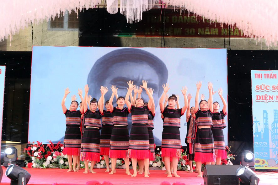 Chương trình được dàn dựng theo phong cách chuyên nghiệp, sử dụng hiệu ứng âm thanh, ánh sáng kĩ thuật số, hiện đại, các thước phim lịch sử được minh hoạ trình chiếu qua màn hình led,… tạo được sự cảm thụ hình tượng của khán giả về quá khứ và hiện tại của sự hình thành và phát triển của thị trấn. Với sự tham gia diễn xuất của gần 100 diễn viên không chuyên đến từ các đơn vị, cơ quan, trường học trên địa bàn.