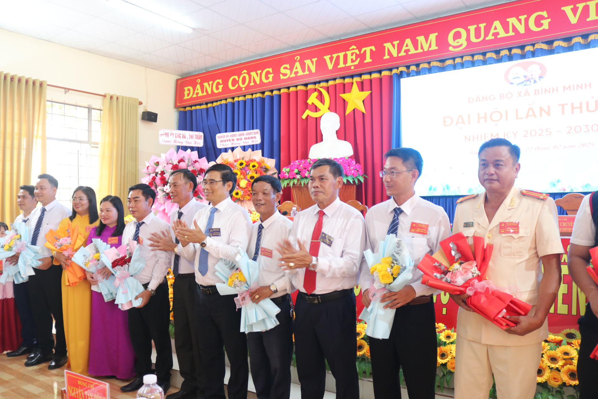 Lãnh đạo huyện Bù Đăng tặng hoa chúc mừng Ban chấp hành Đảng bộ xã Bình Minh khóa IV, nhiệm kỳ 2025 - 2030