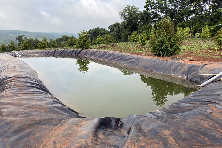 Hồ chứa nước phục vụ tưới tiêu, lót bằng bạt, có mực nước sâu khoảng 3m, nơi em Trần Thế Anh trượt chân rơi xuống bị đuối nước tử vong