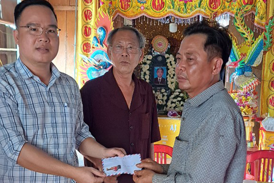 Đại diện lãnh đạo UBND xã Thống Nhất đến thăm hỏi động viên chia buồn cùng gia đình em Trần Thế Anh