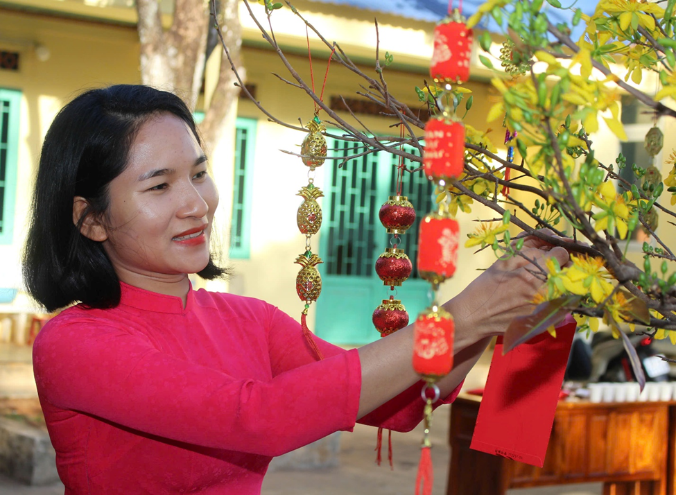 Nhận bao lì xì và chúc nhau bình an, hạnh phúc và hoàn thành tốt nhiệm vụ trong năm mới.