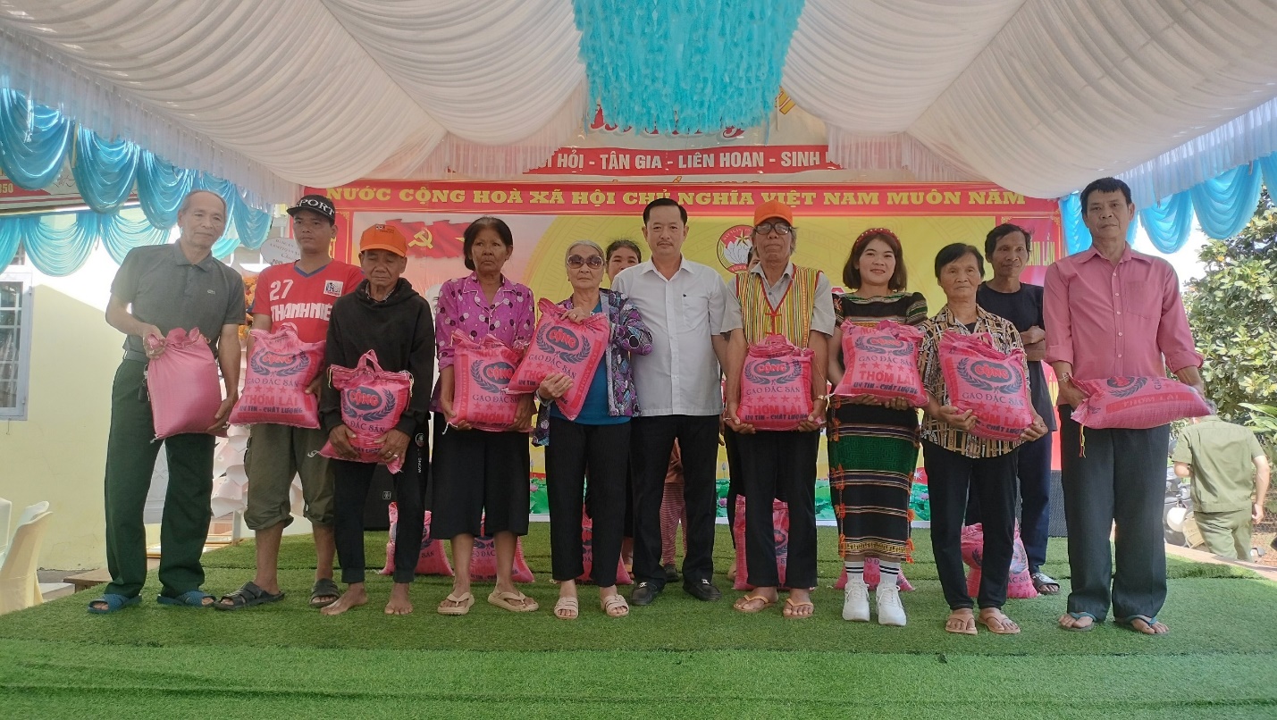 Ủy viên Ban Thường vụ, Chủ tịch UB.MTTQVN huyện Bù Đăng Nguyễn Tuấn Anh tặng quà chúc mừng Nhân dân Thôn 2.