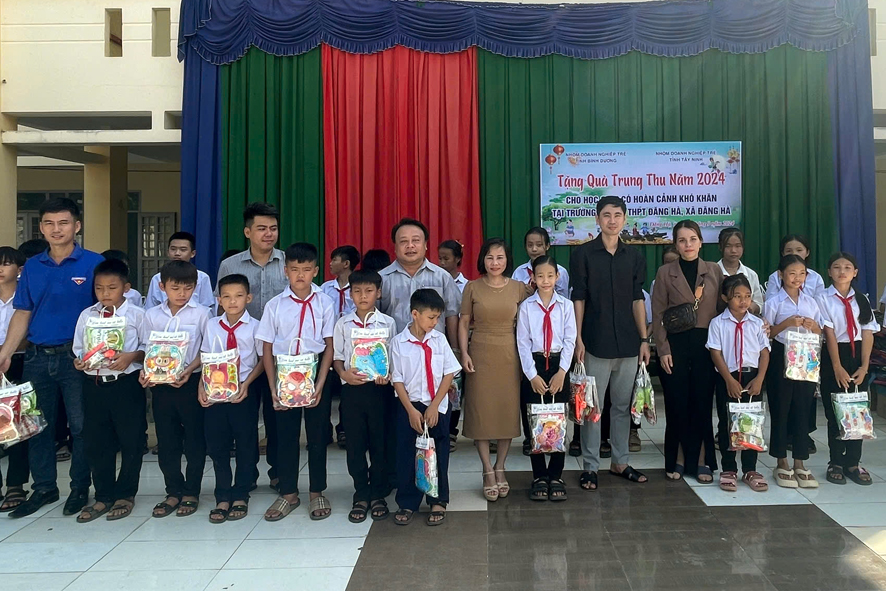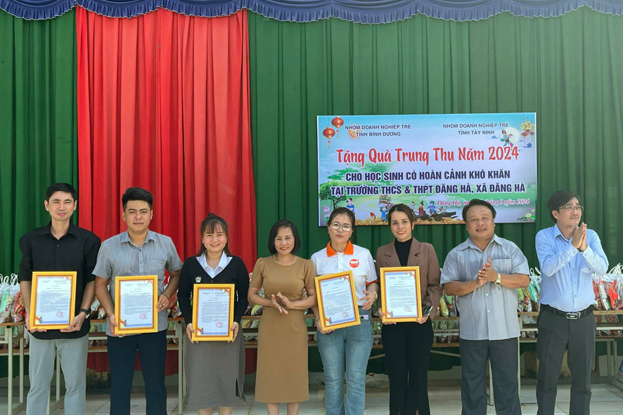 Tại chương trình, đại diện cho nhóm Doanh nghiệp trẻ Bình Dương và Tây Ninh: công ty TNHH TMDV Hoàng Cẩm Tú; công ty TNHH Tường Vinh; công ty TNHH Gỗ Bến Cát; CLB PICKUP Bình Phước; Karaoke Thảo Nhi Đức Liễu trao tặng 440 phần quà, mỗi phần trị giá 100.000 đồng và 60 phần cho trẻ em có hoàn cảnh đặc biệt khó khăn, mỗi phần trị giá 250.000 đồng của hai trường THCS - THPT Đăng Hà và Mầm non Đăng Hà gồm bánh trung thu, đèn lồng và đồ dung học tập.
