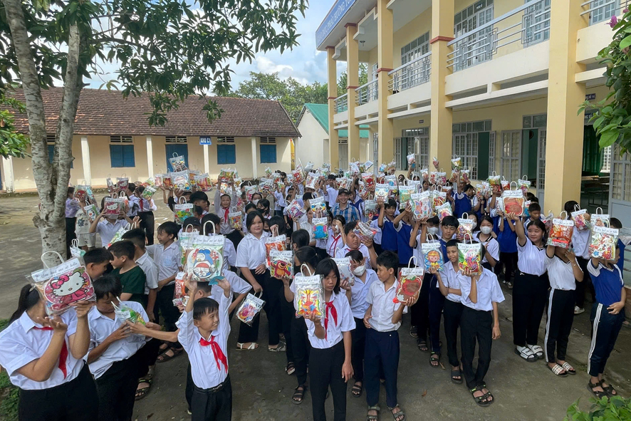 270 em học sinh trường THCS – THPT Đăng Hà vui mừng phấn khởi được nhận những món quà trung thu từ các anh, chị đại diện cho nhóm Doanh nghiệp trẻ Bình Dương và Tây Ninh