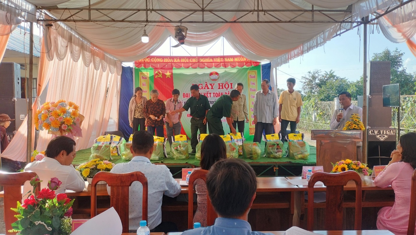 Dịp này 5 gia đình tiêu biểu năm 2024 được ban tổ chức trao tặng Giấy khen, 20 hộ có hoàn cảnh khó tại địa phương được nhận các phần quà do Ban quản lý thôn vận động các mạnh thường quân trao tặng.
