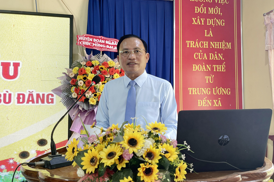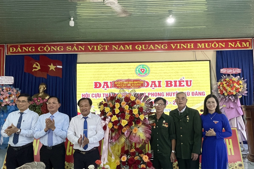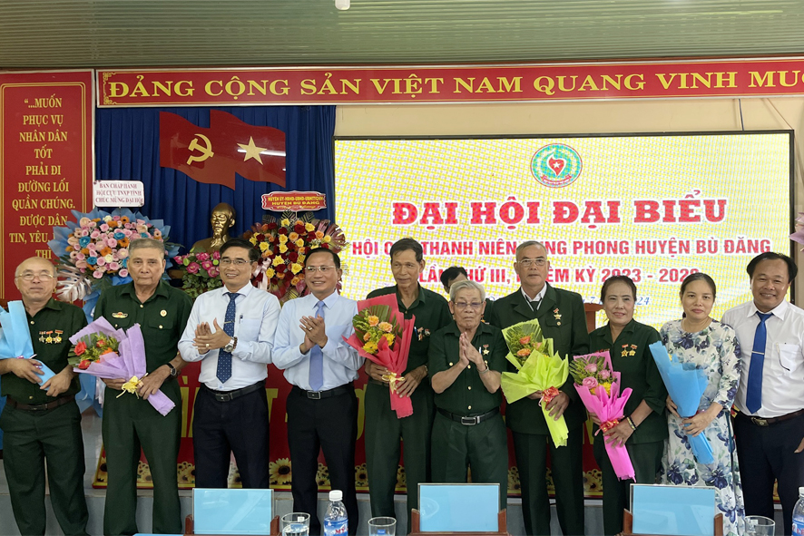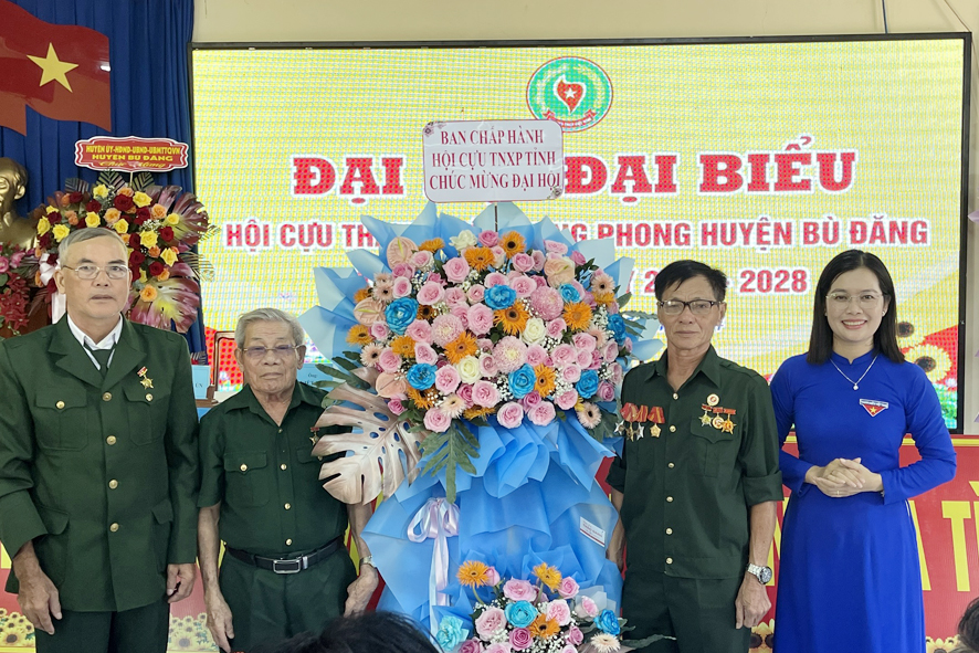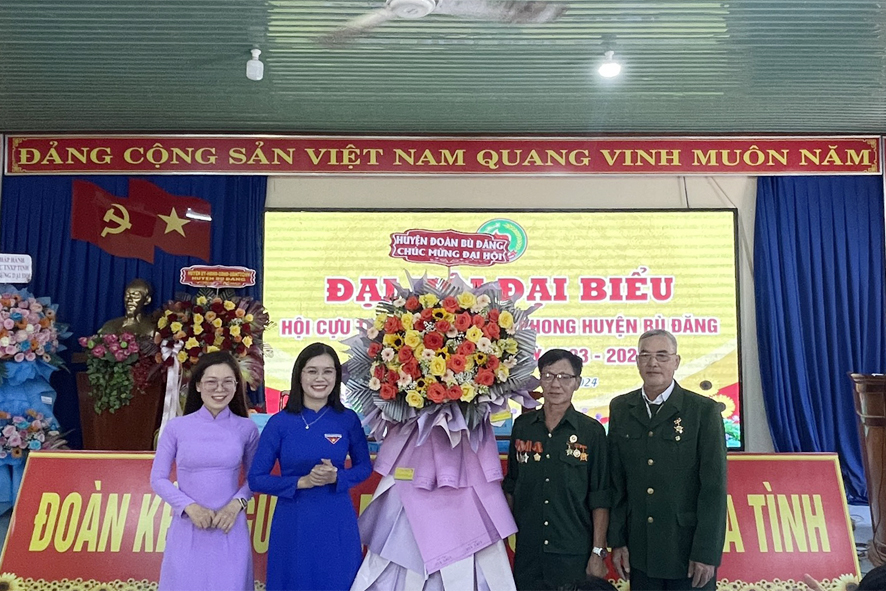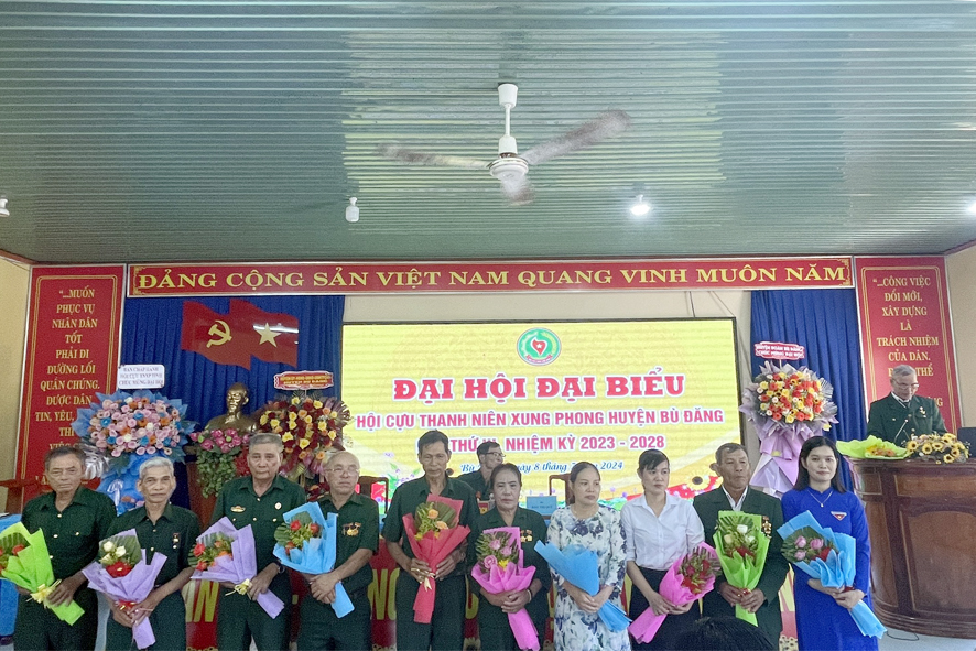 Lãnh đạo Hội cựu TNXP tỉnh Bình Phước, Huyện Bù Đăng và Đoàn TNCS Hồ Chí Minh huyện Bù Đăng tặng hoa chúc mừng Đại hội