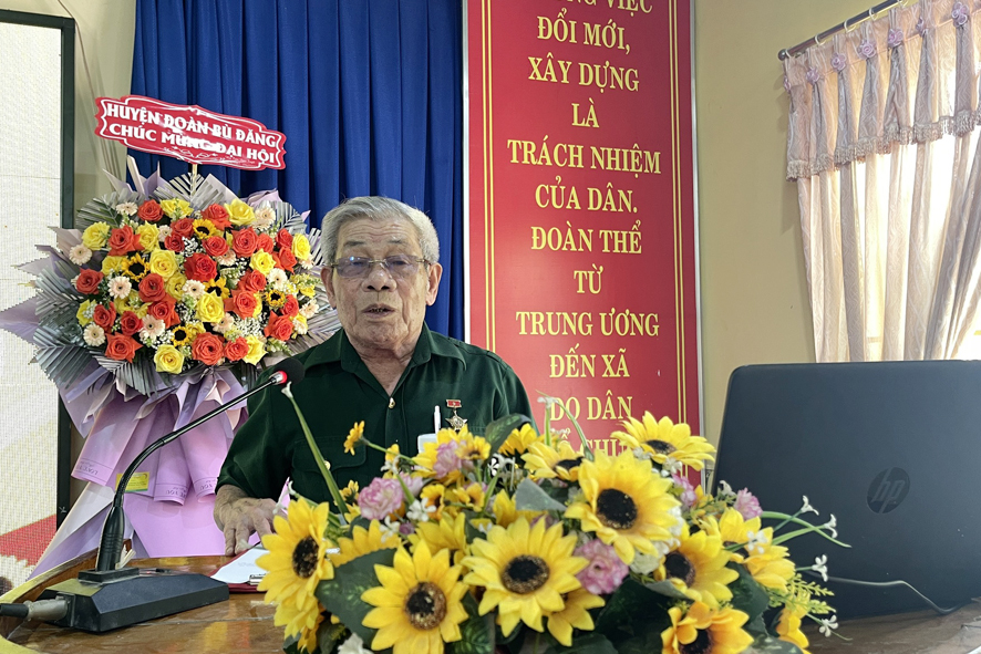 Đồng chí Trần Văn Vang – Uỷ viên Ban chấp hành Trung ương Hội cựu TNXP Việt Nam, Chủ tịch Hội cựu TNXP tỉnh Bình Phước phát biểu chỉ đạo,