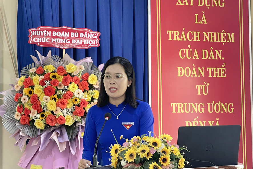 Đồng chí Đào Thị Quế Huyện uỷ viên, Bí thư huyện Đoàn, Phó chủ tịch Hội TNXP huyện khoá II, thông qua báo cáo nhiệm ký trình Đại hội