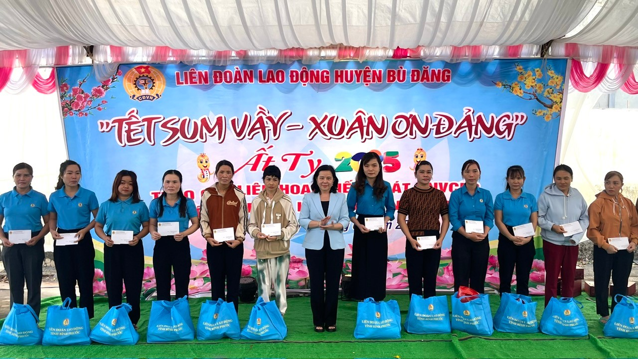 Dự kiến, trong dịp tết nguyên đán Ất Tỵ 2025, Liên đoàn Lao động huyện Bù Đăng sẽ huy động nguồn lực từ các cơ sở, doanh nghiệp để trao khoảng 3.000 phần quà, tổng trị giá hơn 800 triệu đồng cho công nhân người lao động trên địa bàn huyện.