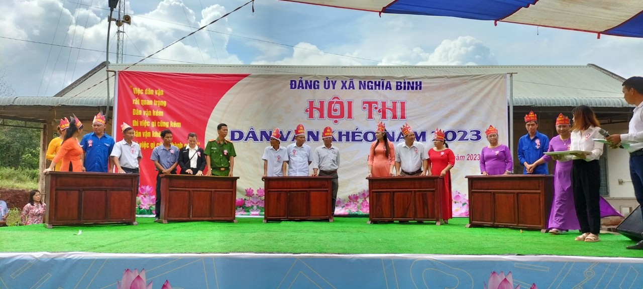 Tại xã Nghiã Bình, tham gia hội thi có 5 đội tuyển với 25 thành viên dự thi là cán bộ, đảng viên, công chức, viên chức, đoàn viên, hội viên, doanh nhân, người lao động, chiến sỹ lực lượng vũ trang trong các cơ quan hành chính nhà nước trực thuộc UBND xã Nghĩa Bình được thành lập từ khối dân vận chính quyền, mặt trận đoàn thể và các thôn, ấp.