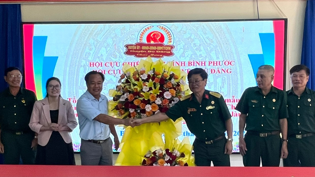Sáng 5-12, Hội Cựu chiến binh (CCB) huyện Bù Đăng tổ chức lễ kỷ niệm 35 năm Ngày thành lập Hội Cựu chiến bình Việt Nam (06/12/1989-06/12/2024) và hội nghị tổng kết Phong trào thi đua “ Cựu Chiến binh gương mẫu”, năm 2024;phong trào “Cựu chiến binh giúp nhau xóa nhà tạm, giảm hộ nghèo và giúp nhau làm giàu hợp pháp” giai đoạn 2020-2024; Dự Hội nghị có đồng chí Vũ Đình Đang – PCT. Hội CCB tỉnh Bình Phước; đồng chí Lê Thanh Hải – UVBTV, Trưởng Ban dân vận Huyện uỷ, đồng chí Nguyễn Văn Lưu – UVBTV, PCT.UBND huyện; đại diện lãnh đạo các cơ quan, ban, ngành, đoàn thể huyện; Chủ tịch, Phó chủ tịch Hội CCB các xã, thị trấn.