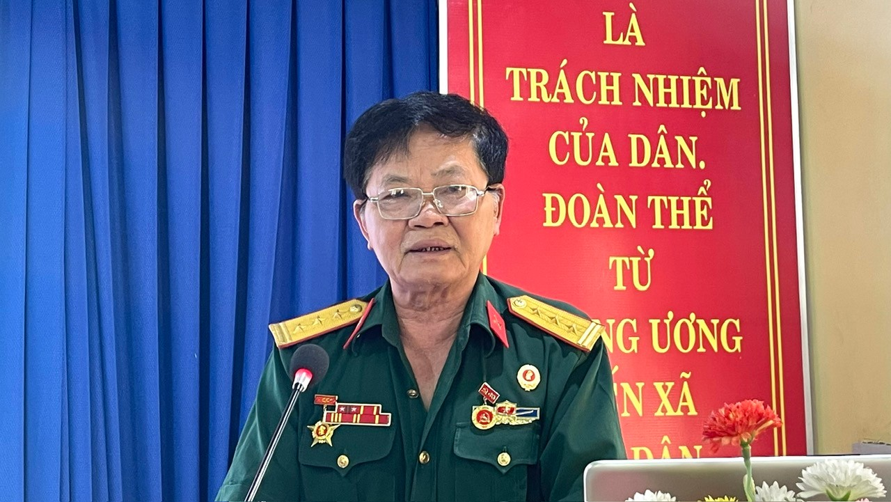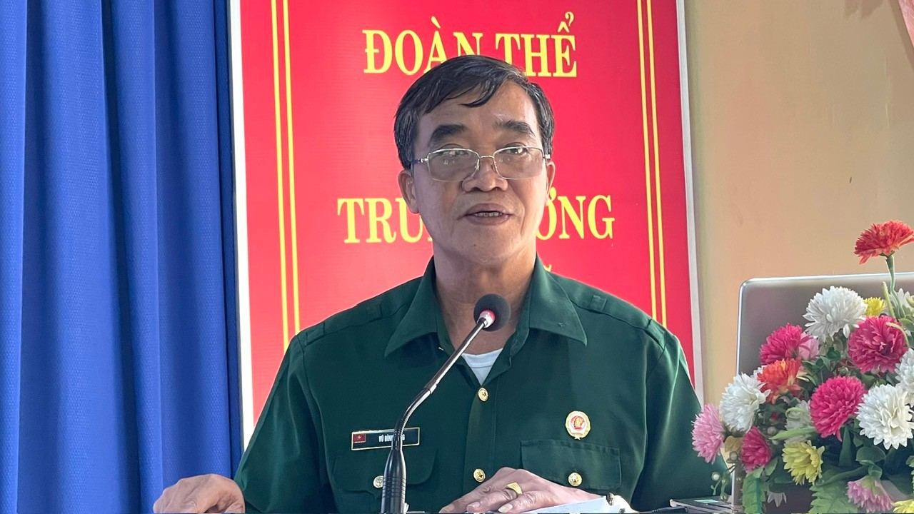 Đ/c Lê Xuân Hải - Chủ tịch Hội CCB huyện Bù Đăng, phát biểu ôn lại truyền thống Ngày thành lập Hội Cựu chiến binh Việt Nam.