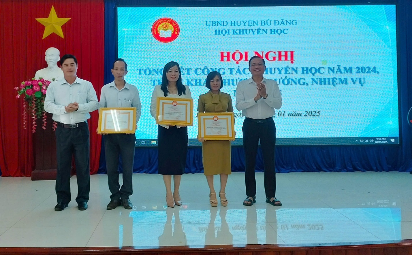 Nhân dịp này, các tập thể, cá nhân có thành tích xuất sắc trong công tác khuyến học, khuyến tài, xây dựng xã hội học tập năm 2024 đã được nhận bằng khen, kỷ niệm chương “Vì sự nghiệp khuyến học” của Trung ương Hội Khuyến học Việt Nam, giấy khen của Hội Khuyến học huyện.