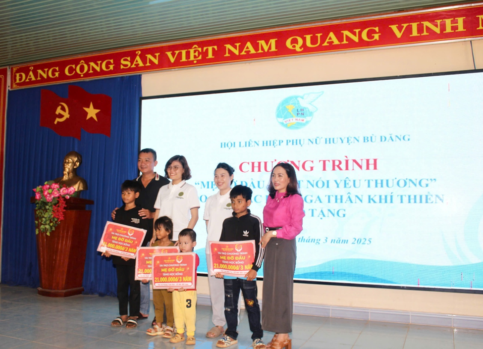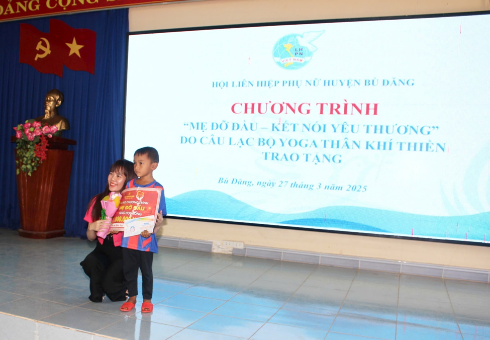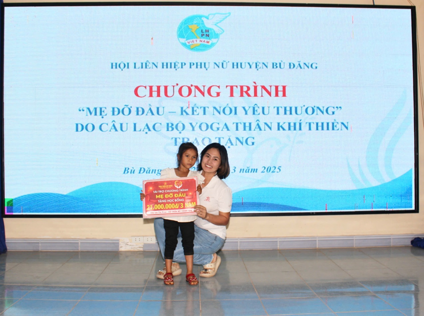 Hôm nay 27-3, Hội Liên hiệp phụ nữ (LHPN) huyện Bù Đăng phối hợp Câu lạc bộ Yoga thuộc quỹ Bước chân bình an Miền nam tổ chức nhận con đỡ đầu và trao quà cho trẻ em mồ côi có hoàn cảnh khó khăn trên địa bàn huyện.
