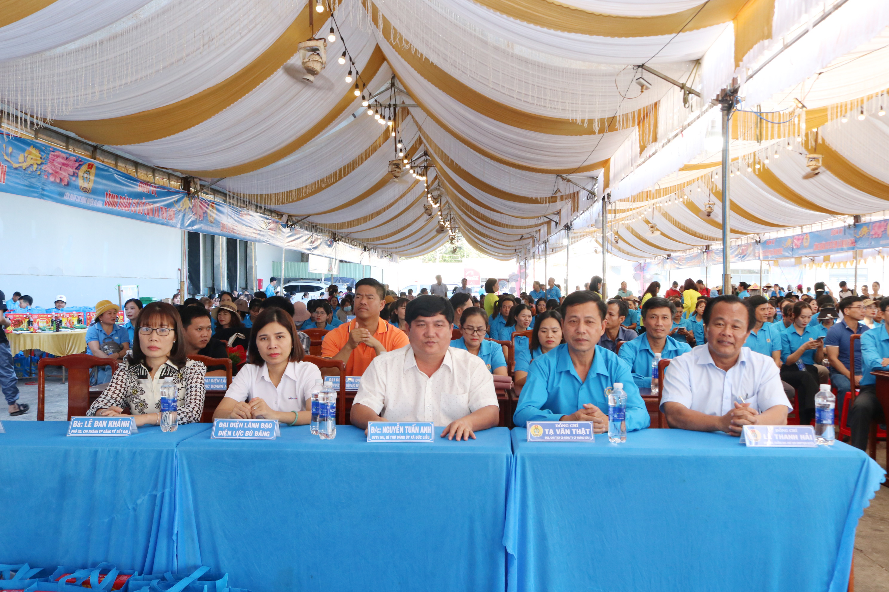 Tham dự Chương trình có đồng chí Nguyễn Văn Sang – Phó chủ tịch Liên đoàn Lao động tỉnh Bình Phước; lãnh đạo Ban Chính sách Pháp luật – Quan hệ Lao động; Ban Tuyên giáo -Nữ công Liên đoàn lao động tỉnh; đồng chí Lê Thanh Hải – UV.BTV, Trưởng Ban Dân vận, Chủ tịch Ủy ban MTTQVN huyện, thay mặt Ban Thường vụ Huyện ủy; đồng chí Nguyễn Tuấn Anh – UV BTV huyện ủy, Bí thư Đảng uỷ xã Đức Liễu; đồng chí Lương Thị Mỹ Duyên -UV.BCH liên đoàn lao động tỉnh Bình Phước, HUV, Chủ tịch Liên đoàn lao động huyện - trưởng Ban Tổ chức, Ông Tạ Quang Huyên -Tổng GĐ Cty CP Hoàng Sơn I; Đại diện lãnh đạo các Cty, doanh nghiệp, các đơn vị tài trợ và 121 Công đoàn cơ sở trực thuộc với trên 500 công đoàn viên, công nhân lao động được thụ hưởng các phúc lợi tại chương trình.