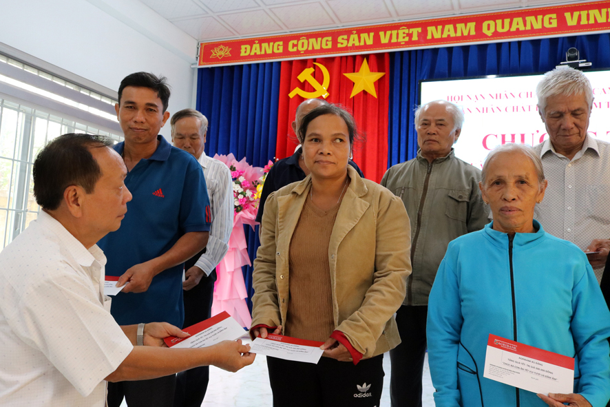 Với mong muốn chung tay hỗ trợ, giúp đỡ các hộ nghèo, người gặp hoàn cảnh khó khăn, đối tượng chính sách trên địa bàn huyện Bù Đăng được đón Tết cổ truyền đầm ấm, an vui, tại chương trình Agribank chi nhánh Bù Đăng đã trao tặng 20 phần quà tết cho 20 đối tượng là nạn nhân chất độc Da cam dioxin trên địa bàn thị trấn Đức Phong, mỗi phần quà 500 ngàn đồng tiền mặt, với tổng trị giá là 10 triệu đồng.