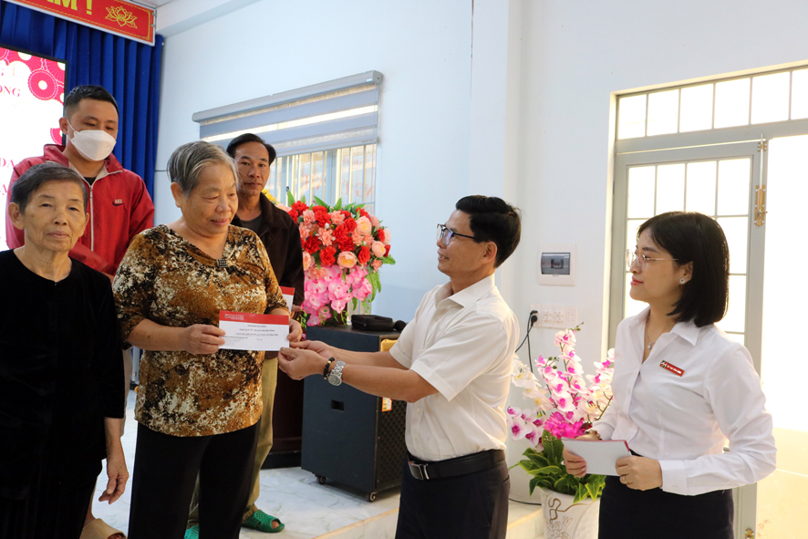 Lãnh đạo Agribank chi nhánh Bù Đăng và Hội nạn nhân chất độc Da cam huyện Bù Đăng trao tặng quà tết cho các nạn nhân chất độc Da cam thị trấn Đức Phong