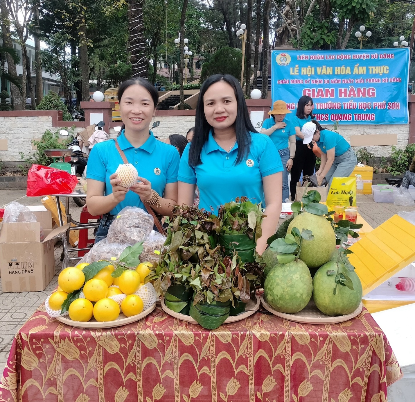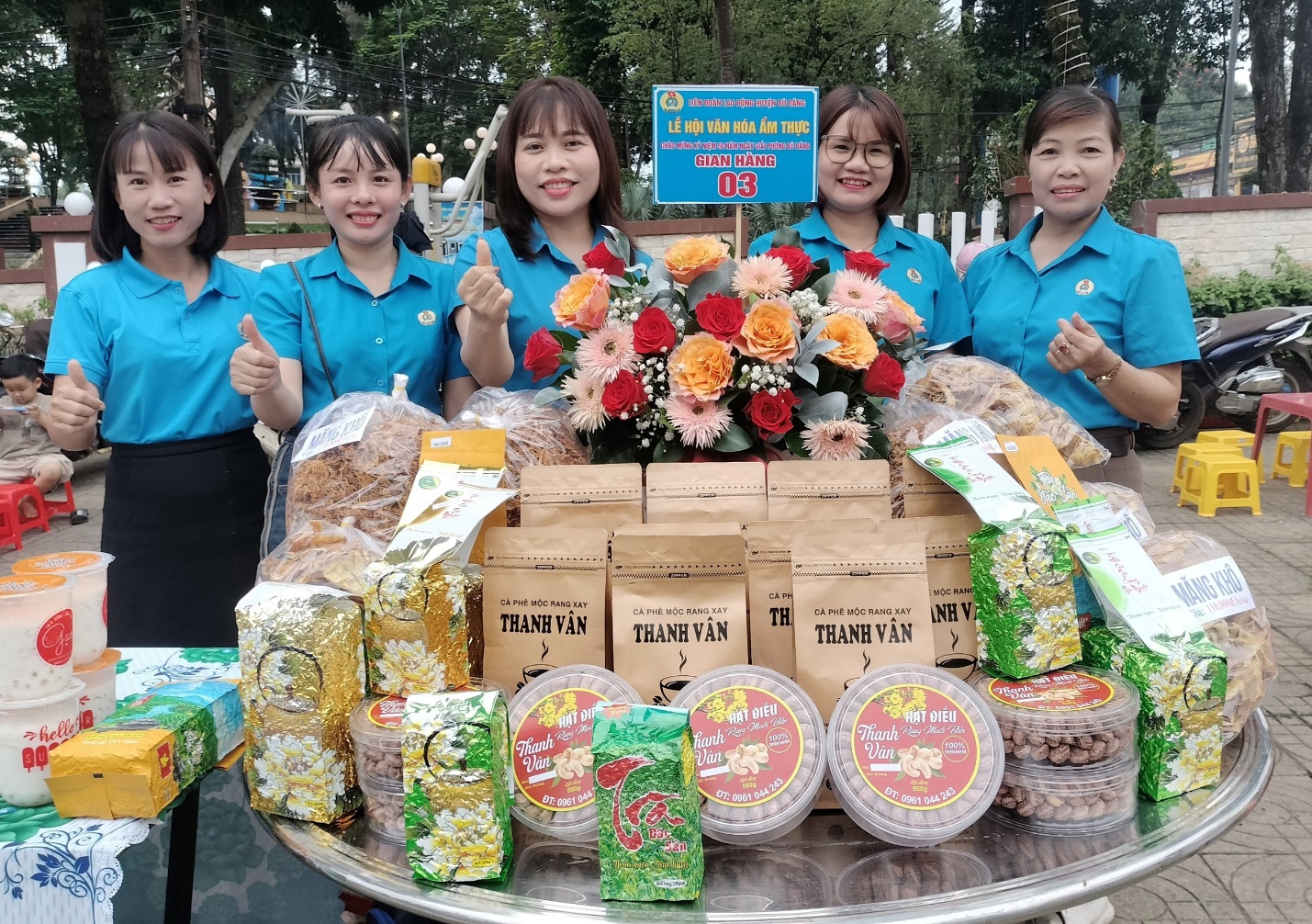 Lễ hội có 45 gian hàng đến từ các công đoàn cơ sở trực thuộc Liên đoàn lao động huyện. Các gian hàng đã mang đến lễ hội những món ăn ẩm thực đặc trưng của địa phương như cơm lam, thịt nướng, lá nhíp, đọt mây và nhiều món ăn mang đậm bản sắc vùng miền như: Mỳ Quảng; Bún bò Huế; bún riêu; bánh canh; bánh bò; gỏi cuốn cùng đa dạng các loại nước giải khát phục vụ du khách