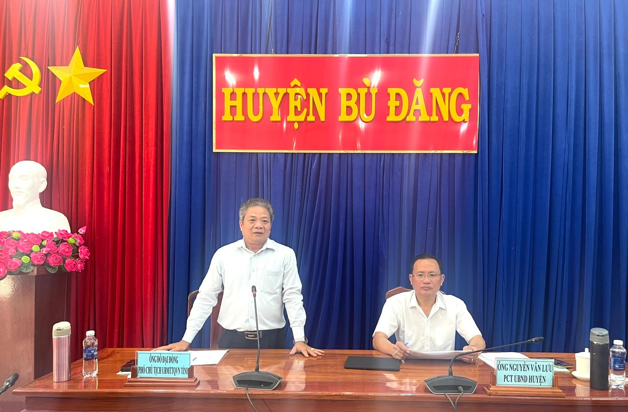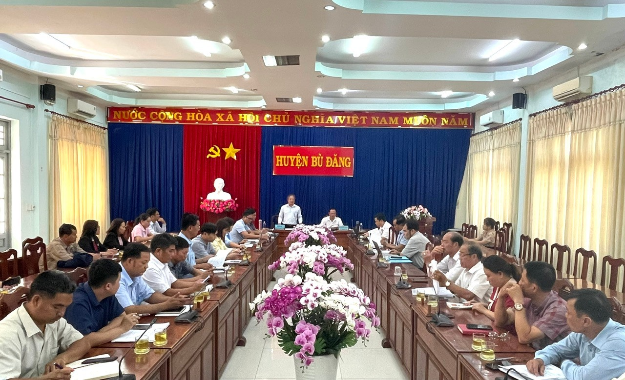 Sáng 17-2, ông Đỗ Đại Đồng – PCT.UBMTTQVN tỉnh Bình Phước, làm trưởng đoàn công tác có buổi làm việc với UBND huyện Bù Đăng về việc kiểm tra, thẩm định các hộ nghèo, hộ cận nghèo đề nghị xây nhà, sửa chữa nhà trong Chương trình xoá nhà tạm, nhà dột nát đợt 1 năm 2025 trên địa bàn huyện. Ông Nguyễn Văn Lưu – UVBTV, PCT.UBND huyện tiếp và làm việc với đoàn;cùng tham gia buổi làm việc có lãnh đạo các phòng, ban chuyên môn huyện; lãnh đạo các xã, thị trấn.