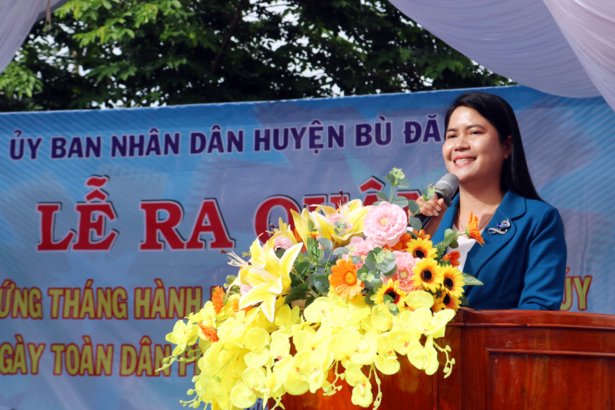 Huyện ủy viên, Phó chủ tịch UBND huyện Thị Diệu Hiền phát biểu khai mạc lễ ra quân