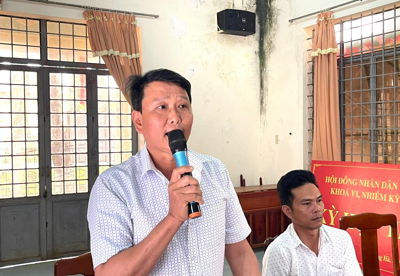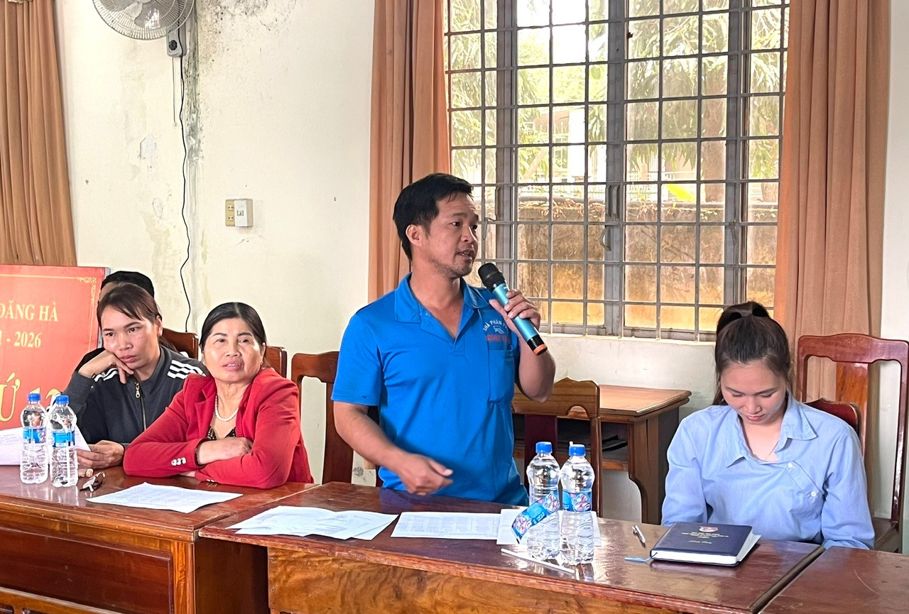 Phát biểu, kiến nghị với đoàn công tác bà con đồng thuận cao về dự án xây dựng Trung tâm hành chính mới xã Đăng Hà. Đồng thời mong muốn nhà nước có chính sách hỗ trợ đề bù thoả đáng; đối với một số hộ dân không còn đất ở, đất canh tác mong muốn nhà nước cấp đất tái định cư để ổn định cuộc sống.