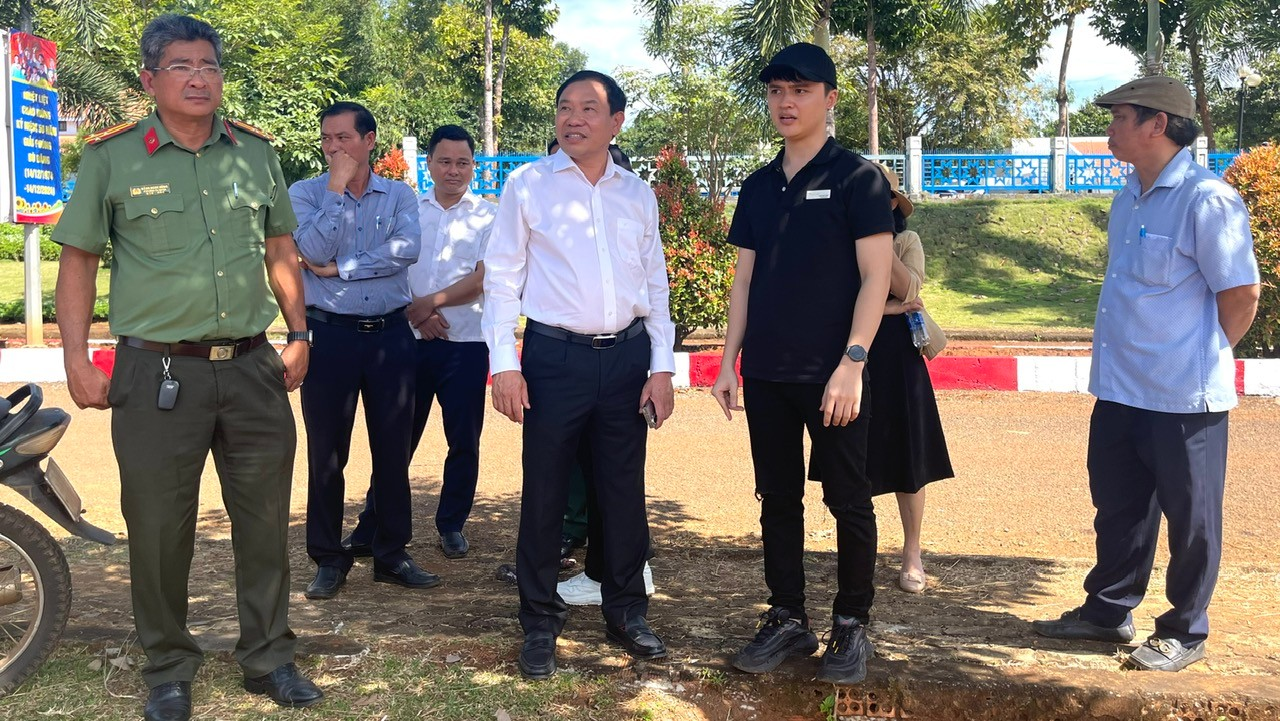 ông Vũ Văn Mười – Chủ tịch UBND huyện kiểm tra cảnh quan khu vực cổng Khu Bảo tồn