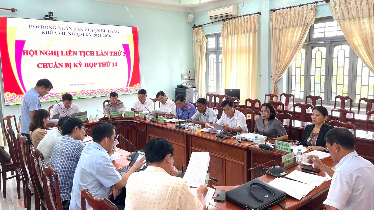 Sáng 27-11, Thường trực HĐND huyện Bù Đăng tổ chức Hội nghị liên tịch lần thứ 2 để thống nhất dự kiến nội dung, chương trình Kỳ họp lần thứ 14, HĐND huyện, khóa VII, nhiệm kỳ 2021-2026 (kỳ họp cuối năm 2024). Đồng chí Nguyễn Tấn Hồng – PBT Thường trực Huyện uỷ, CT.HĐND huyện chủ trì hội nghị. Tham dự có Trưởng, Phó các Ban của HĐND huyện; đại diện lãnh đạo UBND huyện, đại diện Ban Thường trực UBMTTQVN huyện, Tòa án nhân dân, Viện Kiểm sát nhân dân, Chi cục Thi hành án dân sự huyện, Văn phòng HĐND và UBND huyện.