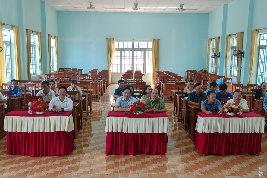 Đồng chí Bùi Ngọc Hân, Ủy viên Ban Thường vụ, Trưởng Ban tổ chức Huyện ủy phát biểu chúc mừng và đánh giá cao quá trình tu dưỡng, rèn luyện, trưởng thành và những đóng góp, cống hiến của đồng chí Nguyễn Thành Vương