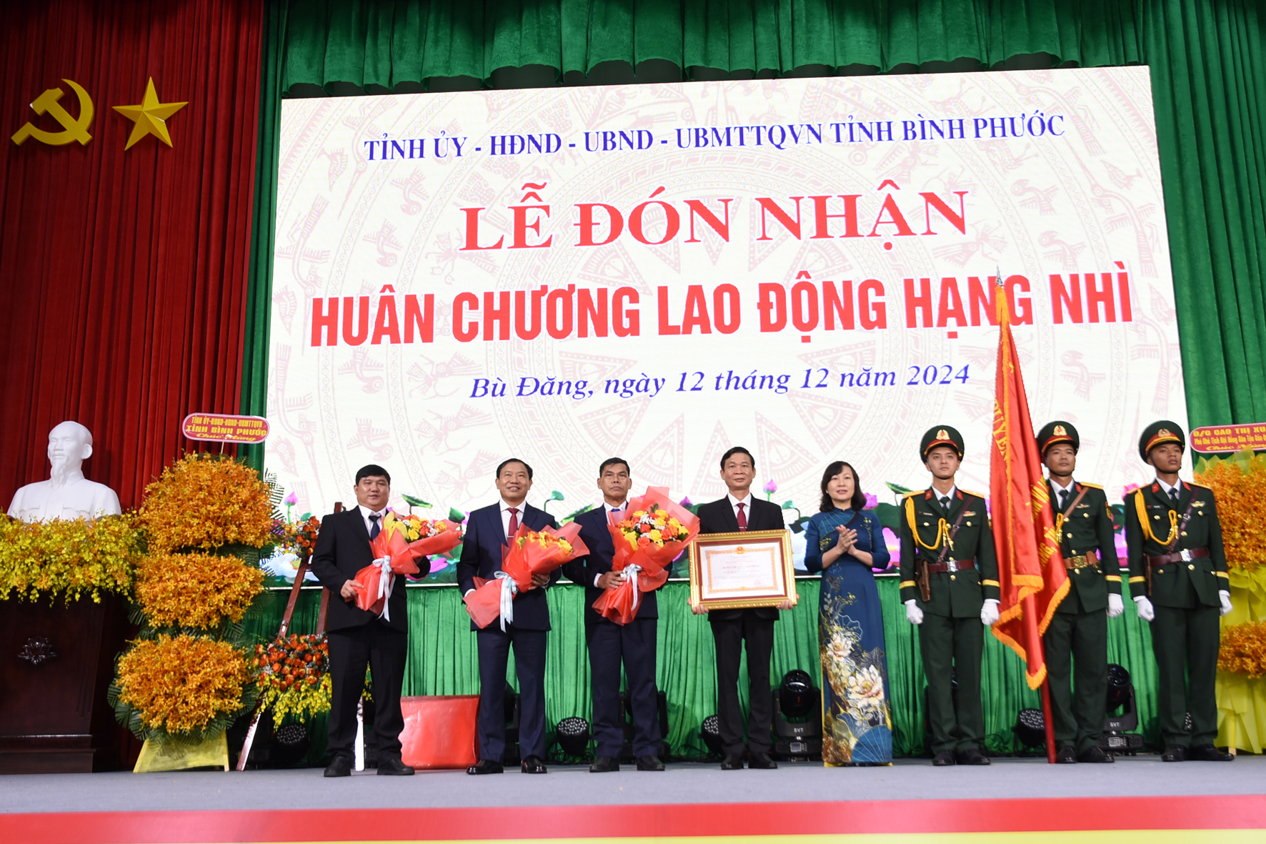Phó bí thư thường trực, chủ tịch HĐND tỉnh Bình Phước Huỳnh Thị Hằng trao Huân chương Lao động hạng Nhì của Chủ tịch nước tặng Đảng bộ, Chính quyền và Nhân dân huyện Bù Đăng